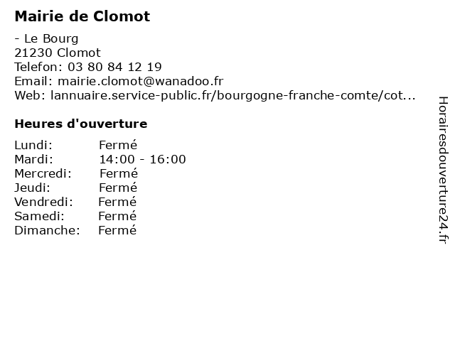 Termes de recherche pour Mairie de Clomot:de, administration, mairie, clomot, service public |