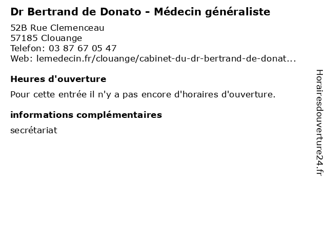 | Appeler Dr Bertrand de Donato - Médecin généraliste | |