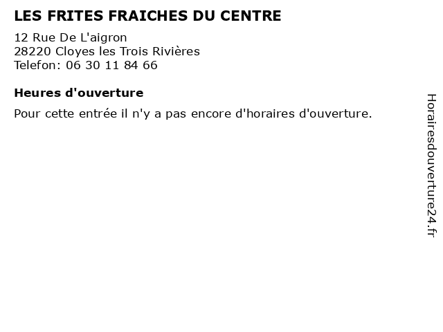 | Appeler LES FRITES FRAICHES DU CENTRE | |