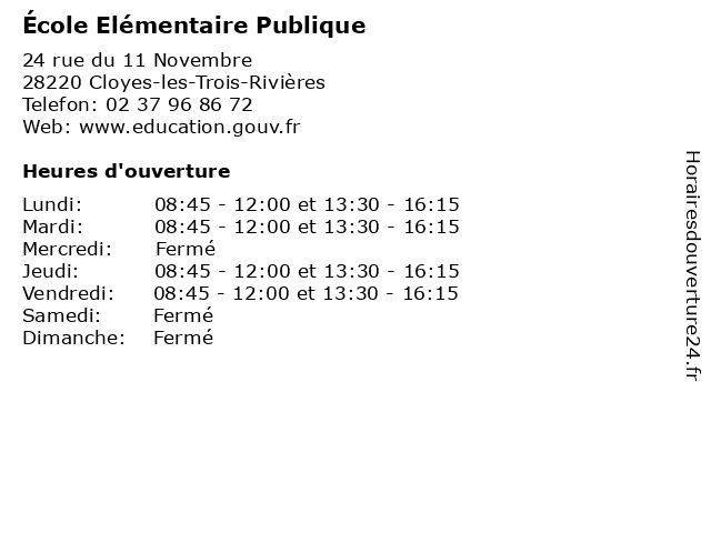 | Lundi | 08:45-12:00 et 13:30-16:15 |