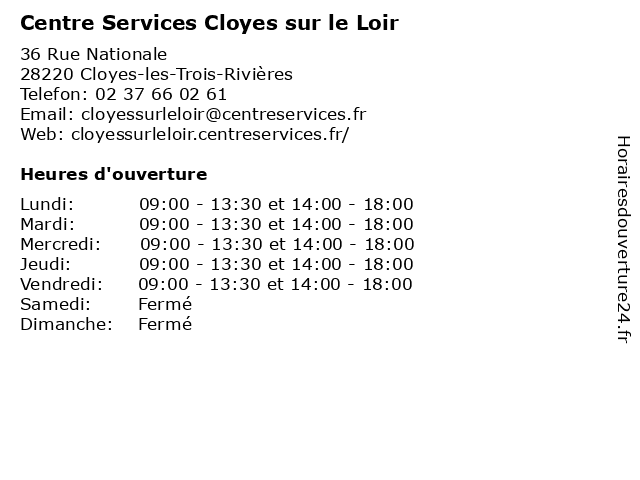 | Mardi | 09:00-13:30 et 14:00-18:00 |