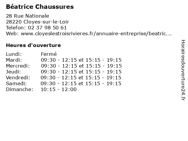 1 GEMO ST DENIS LES PONTS Chaussures et Vêtements (Distance: 9,41 km) Route nationale, 28200 Saint-Denis-les-Ponts bijoux et accesoires, chaussures, denis, et, gemo, les, lingerie, magasin bébé, maroquinerie, mode et habillement, ponts, st, vêtements, vêtements bébé, vêtements enfant, vêtements femme, vêtements homme 2 3 Beslay Chaussures (Distance: 10,86 km) 23 Rue Pean, 28200 Chateaudun baskets, beslay, chaussure, chaussures, enfant, enfants, mode 4 Oreline Chaussures (Distance: 24,33 km) 26 Rue de la Chevalerie, 28160 Brou baskets, chaussure, chaussures, enfant, enfants, mode, oreline 5 Boucherie Charcuterie - Gérald & Béatrice Morin (Distance: 25,04 km) 2 Rue des Lys, 41360 Epuisay alimentation, boucherie, béatrice, charcuterie, commerce, gérald, morin, traiteur, viandes, épuisay 6 Béatrice Dubus - Sage-femme (Distance: 45,07 km) 68 Avenue du Maréchal Maunoury, 41000 Blois béatrice, dubus, femme, medical, sage, sagefemme |