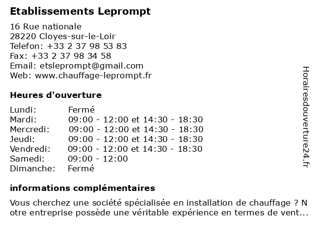 | Lundi | Fermé |