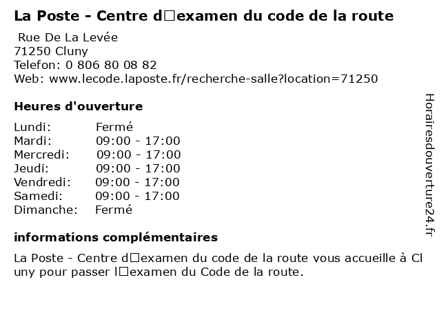 Termes de recherche pour La Poste - Centre d’examen du code de la route:poste, la, du, de, route, centre, code, d’examen, centre d'évaluation scolaire, école technique |