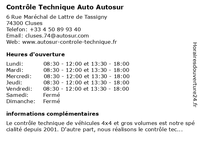 1 2 Sécuritest Contrôle Technique Automobile SCIONZIER (Distance: 1,72 km) 124 Avenue Du Crozet, 74950 SCIONZIER automobile, contrôle, scionzier, sécuritest, technique 3 AS Autosécurité Contrôle Technique CLUSES (Distance: 1,86 km) 2205 Avenue Des Glières, 74300 CLUSES as, autosécurité, cluses, contrôle, technique 4 Sécuritest Contrôle Technique Automobile TANINGES (Distance: 4,74 km) 397 Rue Champs Fleury, 74440 TANINGES automobile, contrôle, sécuritest, taninges, technique 5 Centre de Contrôle Technique Bonneville (Distance: 11,79 km) 124 rue des Hérons Cendrés, 74130 Bonneville automobile, bonneville, centre, controle, contrôle, de, obligatoire, technique 6 AS Autosécurité Contrôle Technique (Distance: 11,97 km) 258 Avenue de la Roche Parnale, 74130 Bonneville as, auto sécurité, autosécurité, centre contrôle technique, contre visite, contrôle, contrôle pollution, contrôle technique, contrôle technique automobile, technique, véhicules léger |