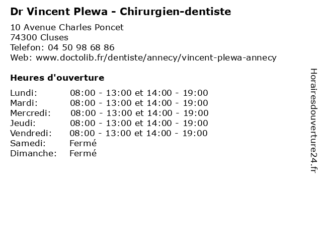 | Lundi | 08:00-13:00 et 14:00-19:00 |