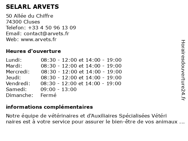 | Mercredi | 08:30-12:00 et 14:00-19:00 |