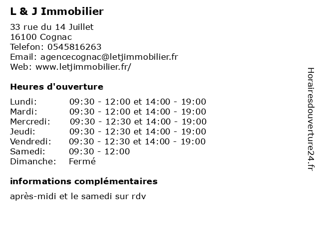 | Jeudi | 09:30-12:30 et 14:00-19:00 |