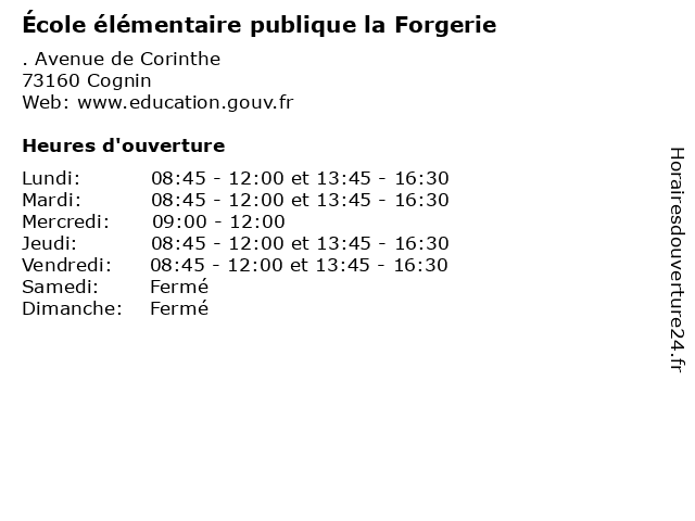 | Lundi | 08:45-12:00 et 13:45-16:30 |
