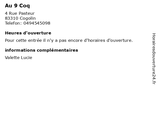Termes de recherche pour Au 9 Coq:restaurants, coq, valette, lucie |