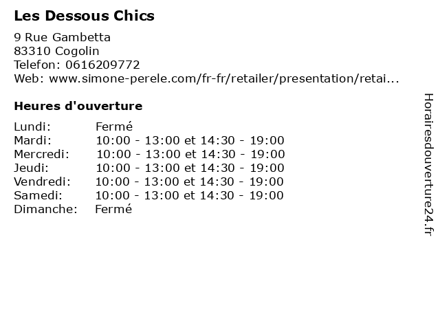 | Samedi | 10:00-13:00 et 14:30-19:00 |