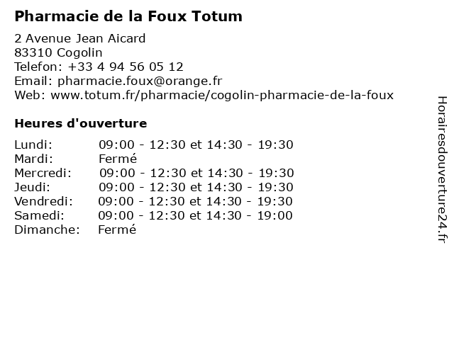 | Samedi | 09:00-12:30 et 14:30-19:00 |