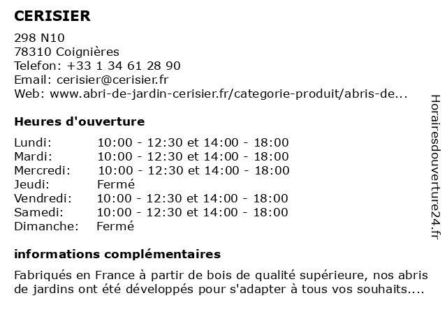 | Mercredi | 10:00-12:30 et 14:00-18:00 |