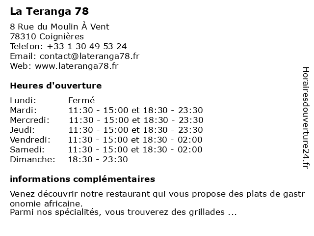 | Mardi | 11:30-15:00 et 18:30-23:30 |