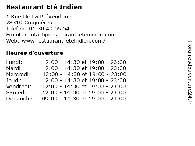 | Mardi | 12:00-14:30 et 19:00-23:00 |