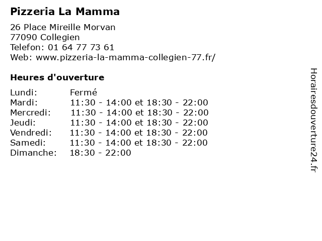 | Mardi | 11:30-14:00 et 18:30-22:00 |