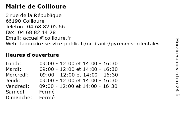 | Mardi | 09:00-12:00 et 14:00-16:30 |