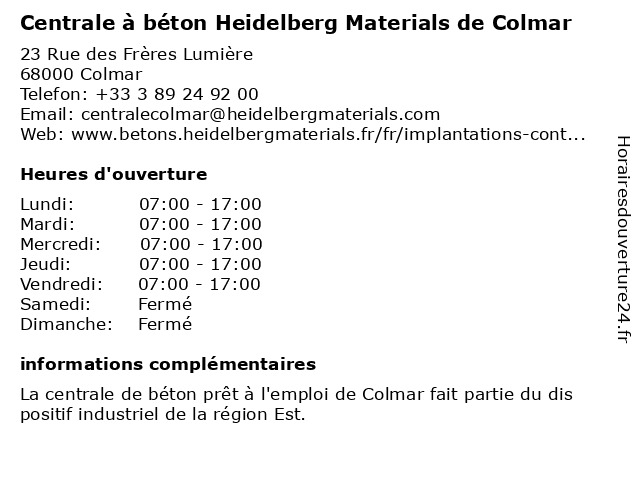 | Lundi | 07:00-17:00 |