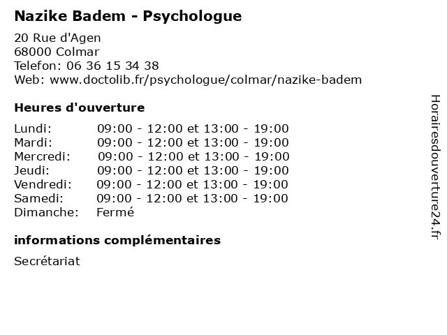 | Samedi | 09:00-12:00 et 13:00-19:00 |