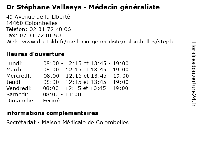 | Mercredi | 08:00-12:15 et 13:45-19:00 |