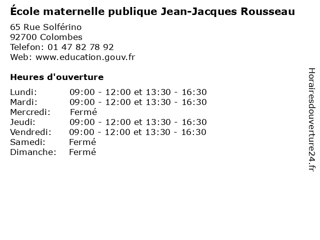 1 École maternelle publique Jean-Jacques Rousseau (Distance: 2,98 km) 13 Rue Jean-Jacques Rousseau, 95100 Argenteuil cours, education, jacques, jean, maternelle, publique, rousseau, services, École, école 2 École maternelle publique Jean-Jacques Rousseau (Distance: 3,74 km) 2 Square de Cherbourg, 93800 Épinay-sur-Seine cours, education, jacques, jean, maternelle, publique, rousseau, services, École, école 3 École Maternelle Publique Jean-Jacques Rousseau (Distance: 7,35 km) 31 Route de Margency, 95600 Eaubonne cours, education, jacques, jean, maternelle, publique, rousseau, services, École, école 4 École maternelle publique Jean-Jacques Rousseau (Distance: 9,00 km) 2 Rue Paul Doumer, 93300 Aubervilliers cours, education, jacques, jean, maternelle, publique, rousseau, services, École, école 5 École maternelle publique Jean-Jacques Rousseau (Distance: 12,94 km) . Place Lalo, 95400 Villiers-le-Bel cours, education, jacques, jean, maternelle, publique, rousseau, services, École, école 6 École élémentaire publique Jean-Jacques Rousseau (Distance: 0,12 km) 52 Rue Jean-Jacques Rousseau, 92700 Colombes cours, education, jacques, jean, publique, rousseau, services, École, école, élémentaire |
