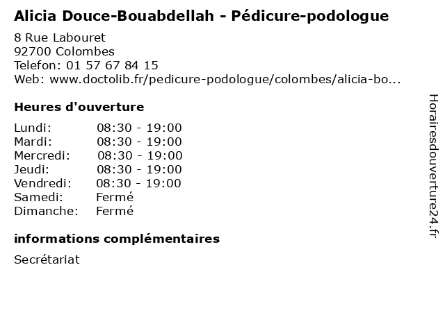 1 Thibaut Follin - Pédicure-podologue (Distance: 0,00 km) 8 rue Labouret, 92700 Colombes 92700, colombes, follin, podologue, pédicure, thibaut 2 Aminata Kone - Pédicure-podologue (Distance: 0,24 km) 3 Rue des Anciens Combattants, 92700 Colombes aminata, cheville, kone, orteil, pied, podologue, pédicure 3 Marie-Annick Lelias - Pédicure-podologue (Distance: 0,90 km) 48 Boulevard Marceau, 92700 Colombes annick, cheville, lelias, marie, orteil, pied, podologue, pédicure 4 Raphaël Delpech - Pédicure-podologue (Distance: 1,07 km) 29 Rue Felix Faure, 92700 Colombes cheville, delpech, orteil, pied, podologue, pédicure, raphaël 5 Christine Sanquer - Pédicure-podologue (Distance: 1,45 km) 12 Rue du Général Leclerc, 92270 Bois-Colombes cheville, christine, orteil, pied, podologue, pédicure, sanquer 6 Jean-Baptiste Berder - Pédicure-podologue (Distance: 1,59 km) 32 Avenue de la Redoute, 92600 Asnières-sur-Seine baptiste, berder, cheville, jean, orteil, pied, podologue, pédicure |