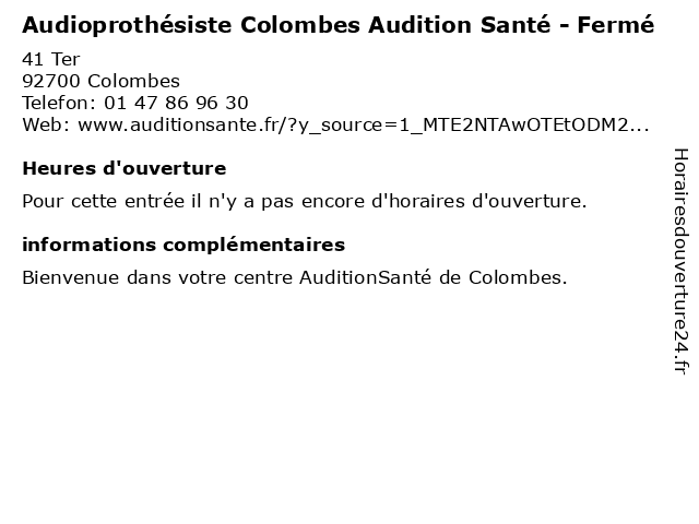 | Appeler Audioprothésiste Colombes Audition Santé - Fermé | |