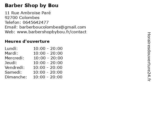 | Dimanche | 10:00-20:00 |