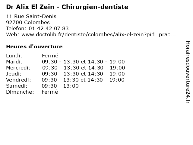 1 Inès El Amrani - Ostéopathe (Distance: 0,25 km) 64 Rue Saint-Denis, 92700 Colombes amrani, el, ines, inès, ostéo, ostéopathe, ostéopathes, soins 2 Dr Mourad El Janati - Chirurgien-dentiste (Distance: 0,54 km) 19 Rue Saint-Denis, 92700 Colombes chirurgien, consultation, dentiste, docteur, dr, el, janati, med, mourad, médecin, médecine, secrétariat, traitement 3 Dr Clothilde El Zein - Chirurgien-dentiste (Distance: 0,58 km) 11 Rue Saint-Denis, 92700 Colombes chirurgien, clothilde, dentaire, dentiste, dr, el, implantologie, parodontologie, zein 4 Sihem El Kamel - Chirurgien-dentiste (Distance: 2,12 km) 108 Rue Paul Vaillant Couturier, 95100 Argenteuil chirurgien, dent, dentiste, docteur, el, kamel, sihem, soins 5 Laakel El h Et Jolivet c (Distance: 2,18 km) 20 Avenue De Charlebourg, 92250 La Garenne Colombes jolivet, laakel, restaurants 6 Dr Latifa El Kaidi - Chirurgien-dentiste (Distance: 2,48 km) 7 Rue Laugier, 95100 Argenteuil chirurgien, dentaire, dentiste, dr, el, implantologie, kaidi, latifa, parodontologie |