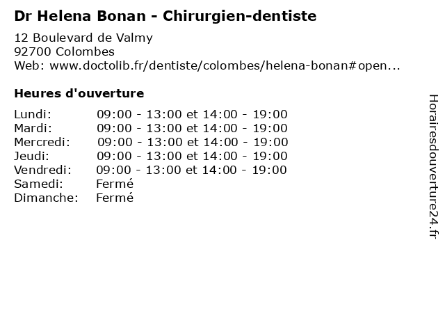 | Lundi | 09:00-13:00 et 14:00-19:00 |