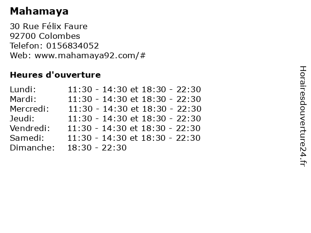| Mardi | 11:30-14:30 et 18:30-22:30 |