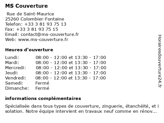| Samedi | Fermé |