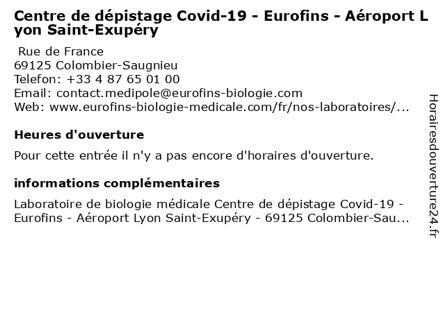 Termes de recherche pour Centre de dépistage Covid-19 - Eurofins - Aéroport Lyon Saint-Exupéry:de, saint, lyon, centre, aéroport, exupéry, 19, dépistage, eurofins, covid |