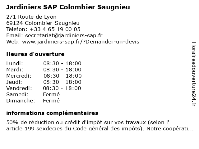 1 Jardiniers SAP St Bonnet De Mure (Distance: 6,89 km) 19 Rue Marius Berliet, 69720 Saint-Bonnet-de-Mure bonnet, de, jardiniers, mure, sap, st 2 Jardiniers SAP St Bonnet De Mure (Distance: 6,89 km) 19 Rue Marius Berliet, 69720 Saint-Bonnet-de-Mure bonnet, de, jardiniers, mure, sap, st 3 Jardiniers SAP St Bonnet De Mure (Distance: 6,89 km) 19 Rue Marius Berliet, 69720 Saint-Bonnet-de-Mure bonnet, de, jardiniers, mure, sap, st 4 Jardiniers SAP Tignieu Jameyzieu (Distance: 8,01 km) 9 Rue des Frères Lumière, 38230 Tignieu-Jameyzieu jameyzieu, jardiniers, sap, tignieu 5 Jardiniers SAP St Priest (Distance: 13,31 km) 23 Route d'Heyrieux, 69800 Saint-Priest jardiniers, priest, sap, st 6 Jardiniers SAP Decines Charpieu (Distance: 13,73 km) 7 Impasse Champ Blanc, 69150 Décines-Charpieu charpieu, decines, jardiniers, sap |