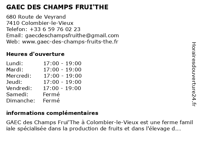 | Samedi | Fermé |