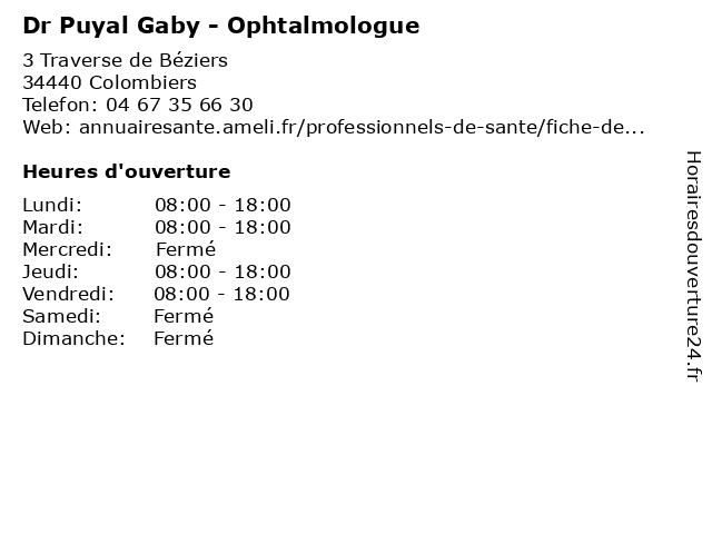 Termes de recherche pour Dr Puyal Gaby - Ophtalmologue:sur, vous, santé, rendez, gaby, docteur, médecins, consultation, dr, ophtalmologue, ophtalmologie, puyal |