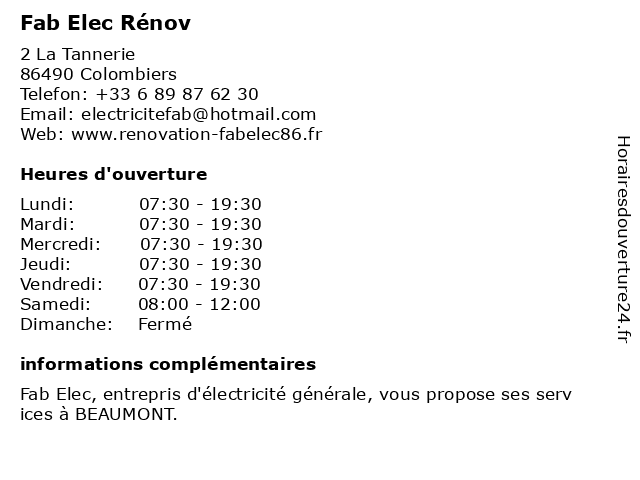 | Vendredi | 07:30-19:30 |