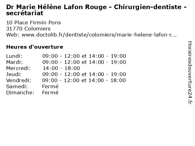 | Lundi | 09:00-12:00 et 14:00-19:00 |