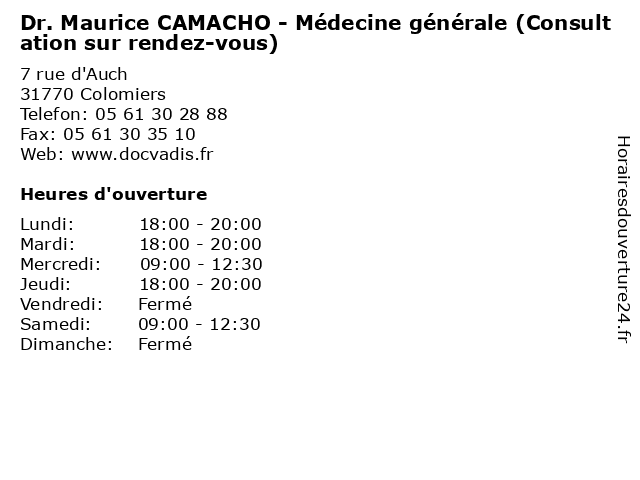 Termes de recherche pour Dr. Maurice CAMACHO - Médecine générale (Consultation sur rendez-vous):sur, générale, vous, medecine, santé, maurice, rendez, docteur, dr., médecins, consultation, camacho |