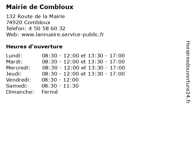 | Lundi | 08:30-12:00 et 13:30-17:00 |