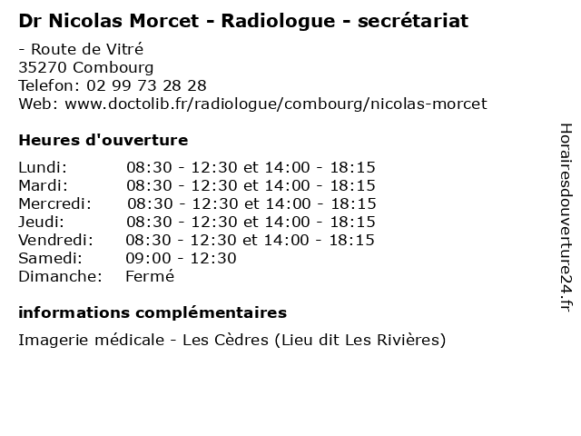 | Mardi | 08:30-12:30 et 14:00-18:15 |