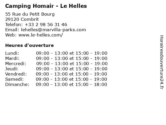 | Dimanche | 09:00-13:00 et 15:00-18:00 |