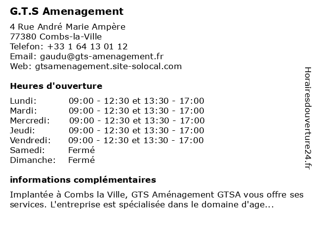 | Lundi | 09:00-12:30 et 13:30-17:00 |