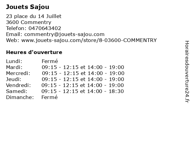 | Mardi | 09:15-12:15 et 14:00-19:00 |