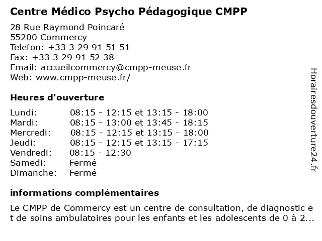 | Lundi | 08:15-12:15 et 13:15-18:00 |