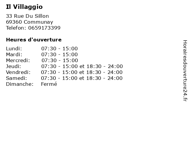 Samedi | 07:30-15:00 et 18:30-24:00 |