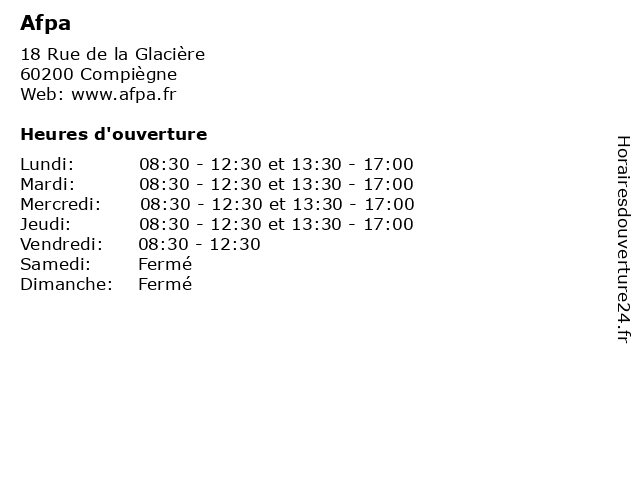 3 Afpa (Distance: 3,22 km) 2380 avenue Octave Butin, 60280 Margny les Compiegne afpa, agence, emploi, formation afpa, professionnelle 4 Afpa (Distance: 27,64 km) - Rue du Grand Pré, 60870 Villers Saint Paul afpa, entreprise, partenaire, services 6 Afpa (Distance: 50,75 km) 30 Boulevard Chevalier Bayard, 77100 Meaux afpa, entreprise, partenaire, services |