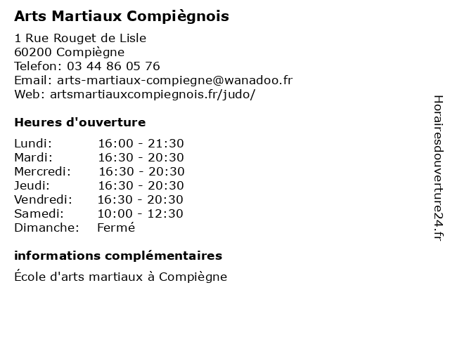 1 Le Bistrot des Arts (Distance: 2,07 km) 33 Cours Guynemer, 60200 Compiègne arts, bistrot, café, des, le, repas, restaurants, traditionnel 2 Rugby Club Compiègnois (Distance: 3,15 km) 1 Avenue de l'Armistice, 60200 Compiègne club, compiègne, compiègnois, rugby, sports, équipe 3 Cultura (Distance: 0,45 km) 10 Avenue de l'Europe, 60200 Venette beaux-arts, billetterie, coffrets cadeaux, concerts, consoles, cultura, dvd et bluray, ebooks, jeux-vidéo, musique, papeterie, presse, univers enfants 4 Cultura (Distance: 31,04 km) . Rue de l'égalité, 60740 Saint Maximin beaux-arts, billetterie, coffrets cadeaux, concerts, consoles, cultura, dvd et bluray, ebooks, jeux-vidéo, musique, papeterie, presse, univers enfants 5 Cultura (Distance: 51,38 km) . Rue Victor Drouet, 77410 Claye Souilly beaux-arts, billetterie, coffrets cadeaux, concerts, consoles, cultura, dvd et bluray, ebooks, jeux-vidéo, musique, papeterie, presse, univers enfants 6 École de Silat Défense Adamoise (Distance: 53,48 km) 1 Allée du Dr Jean Cailleux, 95290 L'Isle-Adam adamoise, d'arts, de, défense, l'isle-adam, martiaux, silat, école |