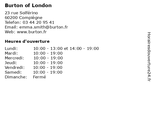 | Lundi | 10:00-13:00 et 14:00-19:00 |