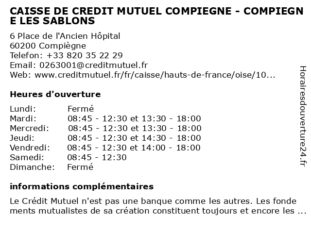 Termes de recherche pour CAISSE DE CREDIT MUTUEL COMPIEGNE - COMPIEGNE LES SABLONS:les, de, compiegne, crédit, mutuel, caisse, sablons |